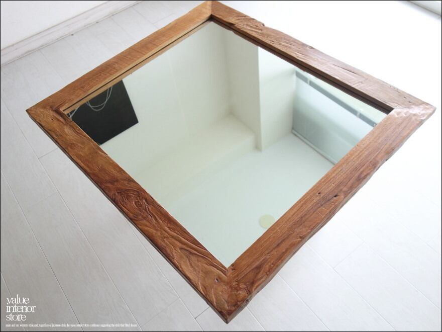 古材 鏡 オールドチークフレームミラー壁掛89h レトロ 大型 古材家具 手作り 総無垢 壁掛け 銘木 天然木 送料無料 幅79cm x 縦89cm