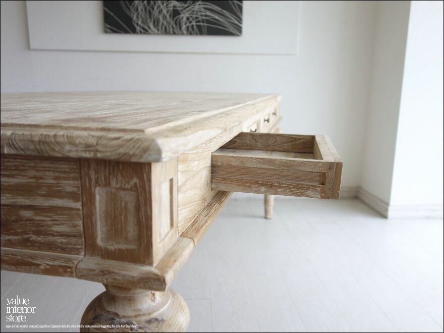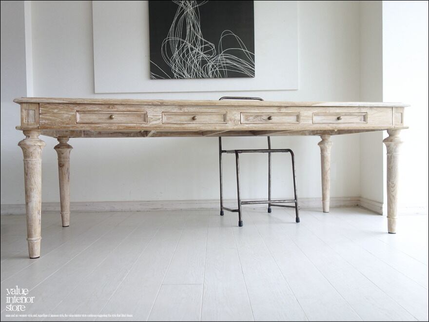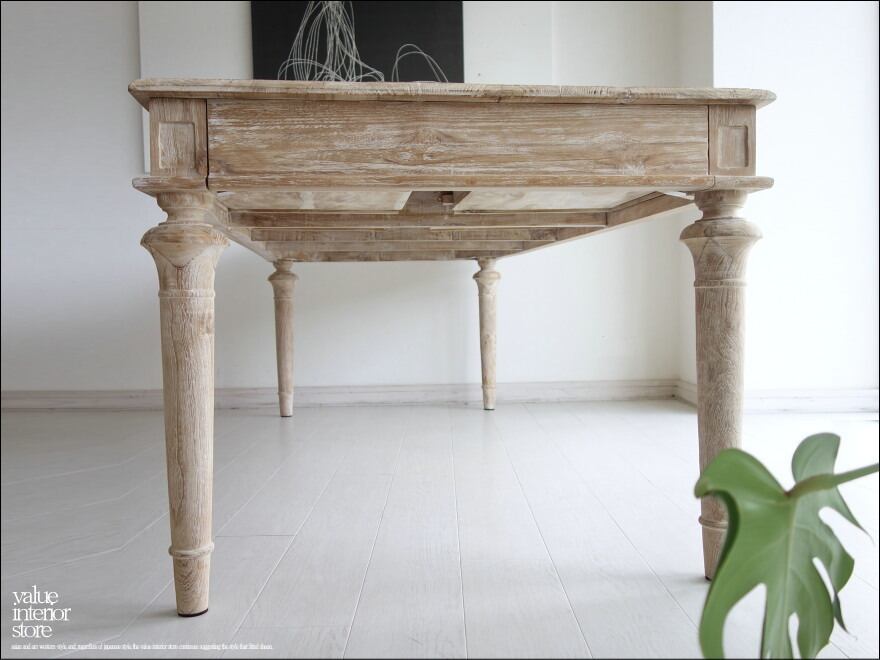 「 クガ様 サイズオーダーテーブル 」チーク総無垢 ダイニングテーブルLEA 食卓テーブル デスク 手作り 机 ナチュラルホワイト 無垢材 世界三大銘木 W200×D90cm