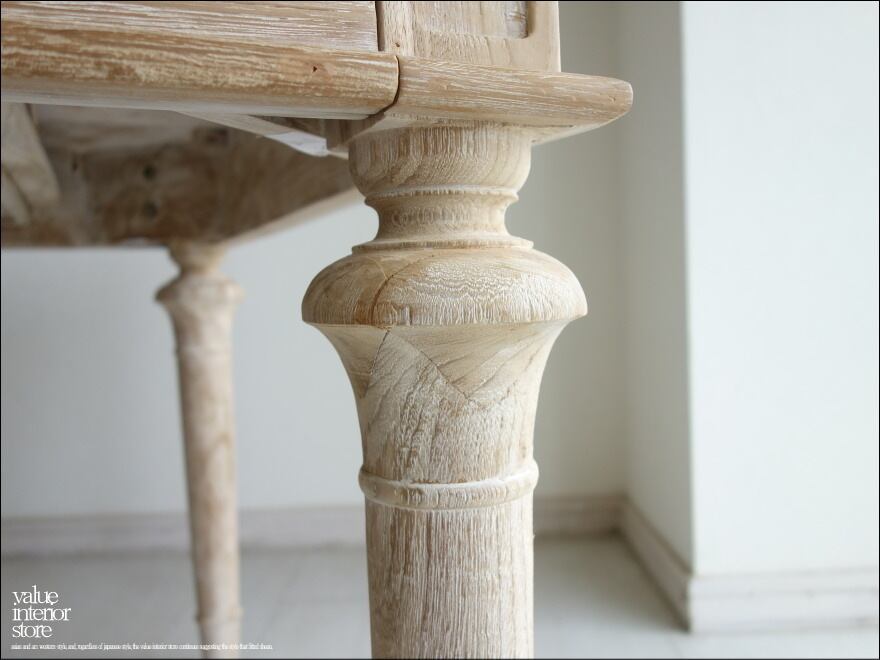 天板を支える脚、また、幕板もこだわったデザインで大人の雰囲気があります。チークの渋く硬い特徴やフシなどの木が本来持つ個性的なキャラクターが大変面白く、また、手作りでしか出せない素朴な質感とのバランスも良いです。良質な油分を豊富に含むチーク材ですので、徐々にチーク色に変化していくところも楽しんでいただけるダイニングテーブル。こんなテーブルで毎日食事ができたらステキですね。ショップやカフェのテーブルとしてもおすすめです。