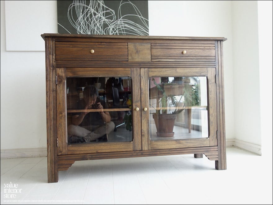 ・素材 : チーク総無垢、ガラス、真鍮(取っ手)