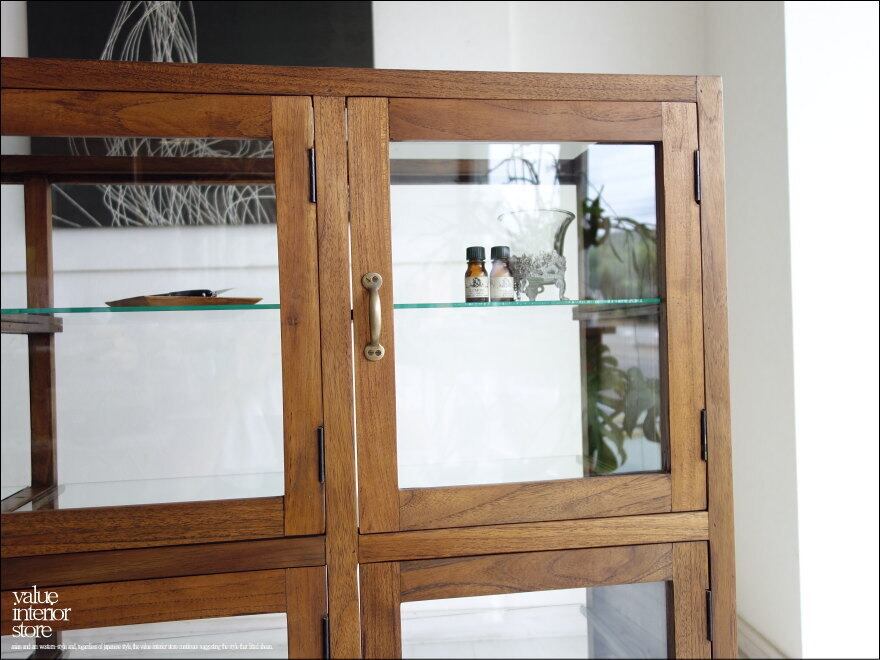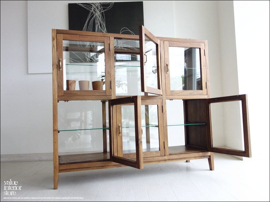 「 ウエタケ様 ご注文商品 」チーク無垢材 ガラスパンケース6枚扉Med120 ショーケース コレクションケース 陳列棚 店舗什器 ガラスケース 飾り棚 真鍮