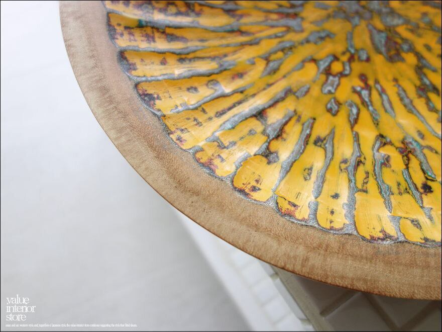 モンキーポッド総無垢材 デコレーショントレイY 小物入れ 飾り皿 木製 菓子器 手作り エスニック ハンドメイド 総無垢 一点物 直径約34cm