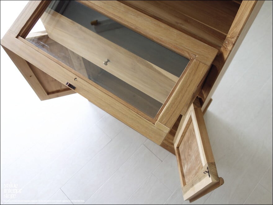 ◇商品はガラス扉付 収納キャビネット×1台、チーク総無垢引出し六杯N×1台です。その他はイメージです。