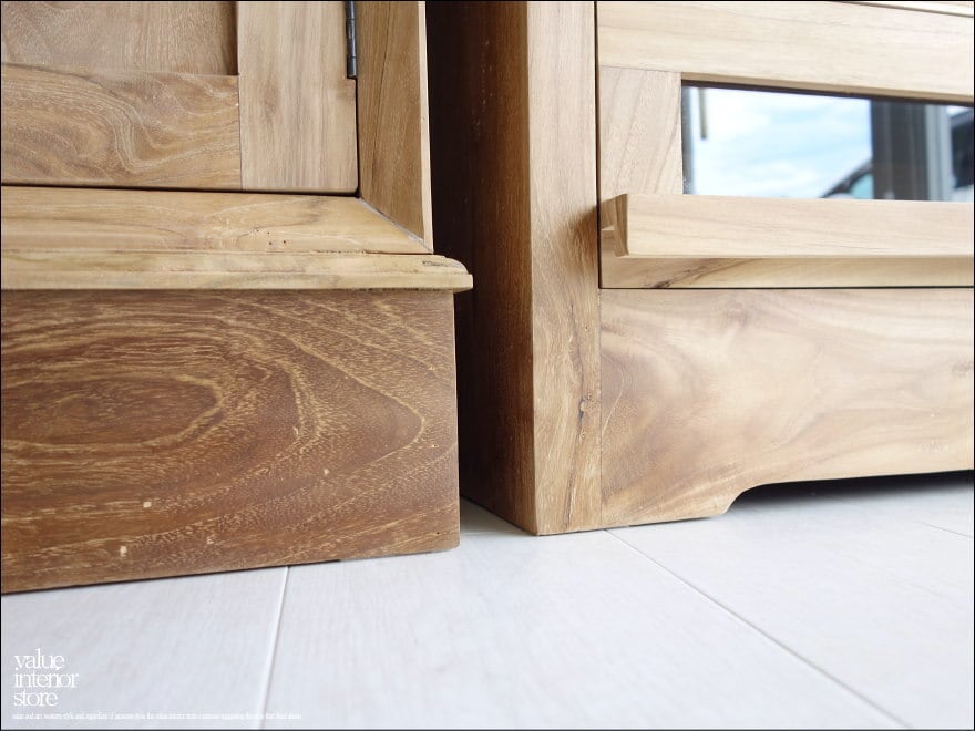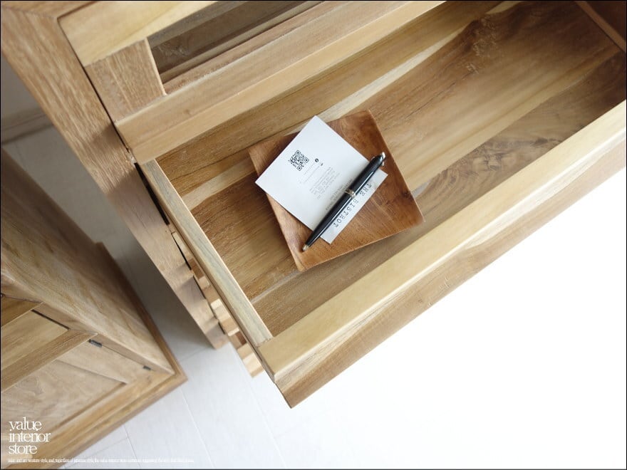 ◇チーク無垢材は人のお肌同様に、長時間、直射日光や冷暖房の風のあたる場所や湿気、乾燥が著しい場所を嫌います。反りや割れ、退色の原因になりますのでお避けください。