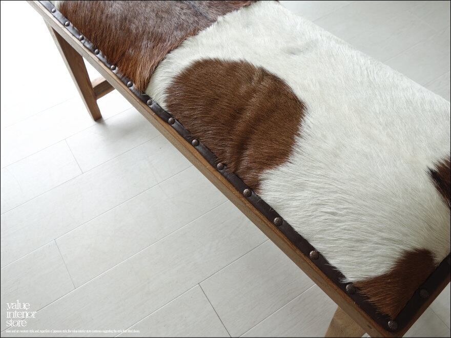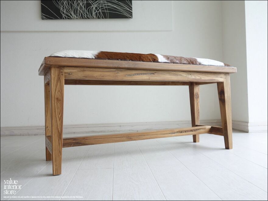 「 タナカ様 サイズオーダーベンチ 」オールドチーク無垢材 ハラコベンチfur 長椅子 毛皮 本皮ソファ 古材 レザー張り 毛皮張り レトロ調