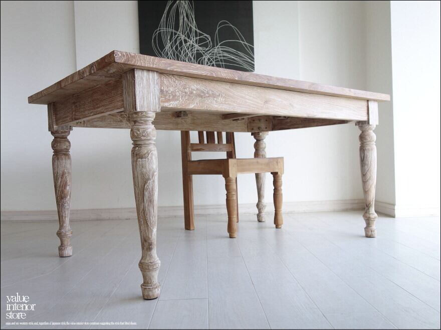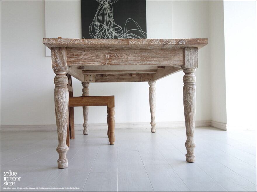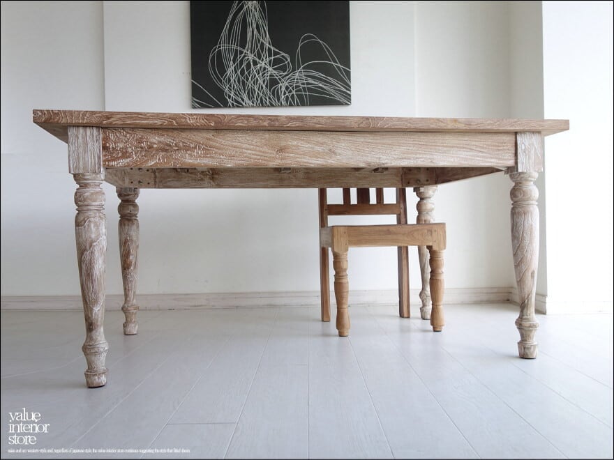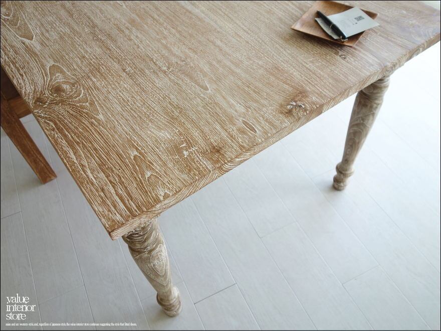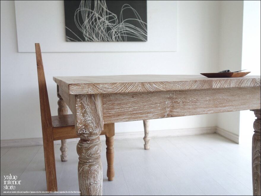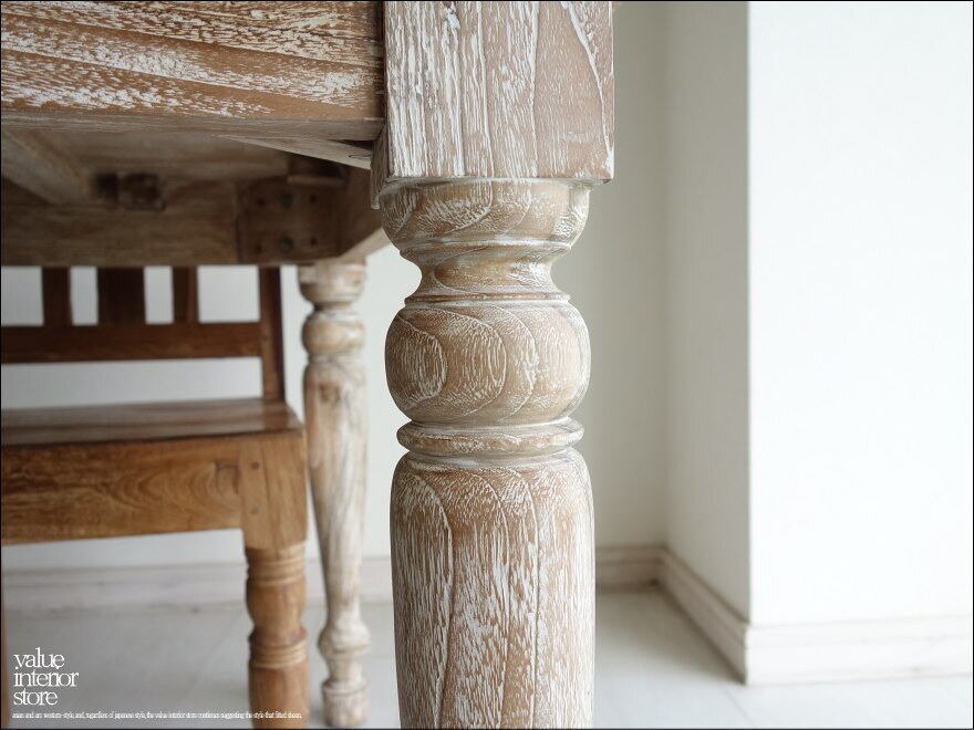 オールドチークダイニングテーブルBOL/NW150cm (ナチュラルホワイト仕上げ)