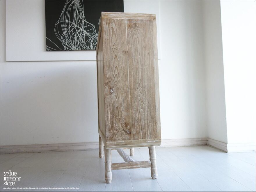 フレームはチーク総無垢でガラス面が多く中がキレイに見えますので、お店のショーケースとしてもお使いいただけます。表面は凹みに薄っすらと白色を入れるナチュラルホワイト仕上げ。硬く張りのあるチーク材だからできる仕上げ方法です。カフェなどのパン用ショーケース、食器棚、小物のディスプレイなど幅広くお使いください。