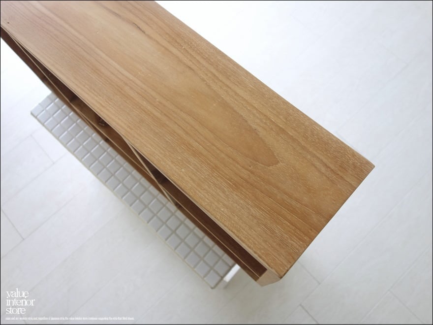 ナチュラルな木目が美しいチーク総無垢材の収納シェルフ。