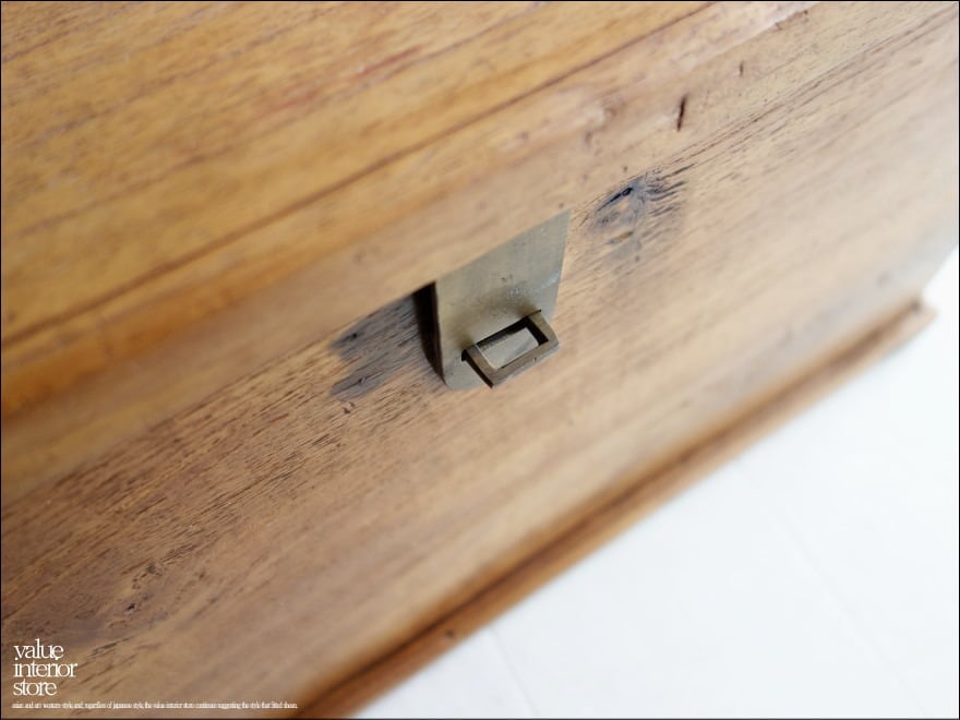 チーク材独特の色合いで、古いものならではの渋く落ち着いた雰囲気が感じられる収納ボックス。