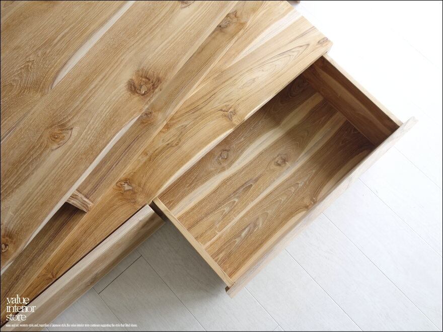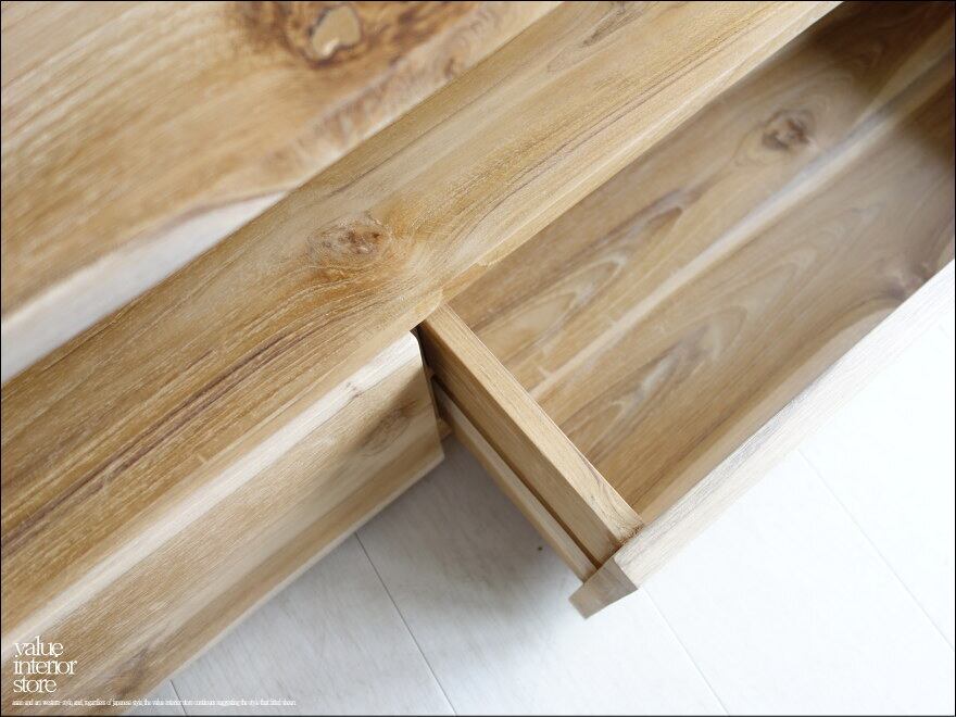 大きめの引出しもありますので細かなものの収納ができ便利。ナチュラルで個性的な木目の美しいチーク材は、変わり行く色の変化(いわゆるチークカラーへの変化)もお楽しみいただけます。