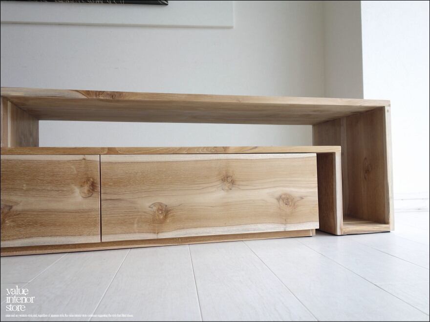 チーク総無垢材で製作したシンプルなデザインのテレビ台。