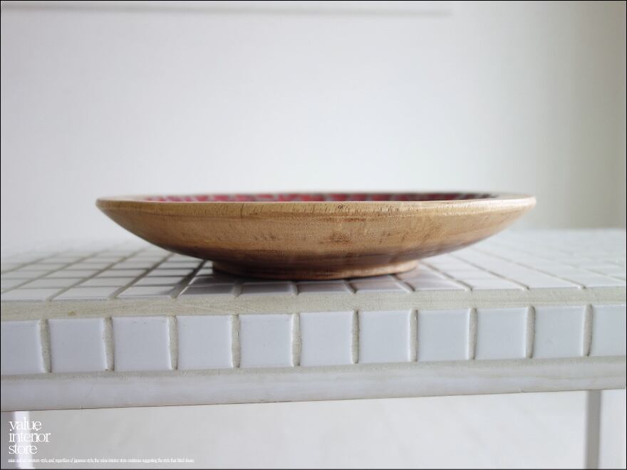 モンキーポッド無垢材 デコレーショントレイRD 小物入れ 飾り皿 木製 菓子器 手作り エスニック ハンドメイド 総無垢 一点物 直径約25cm