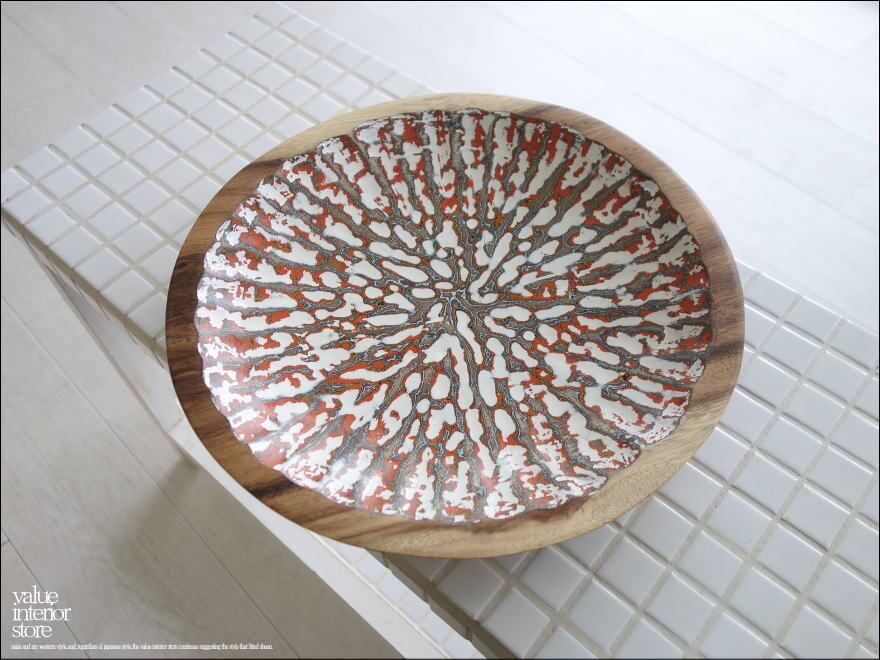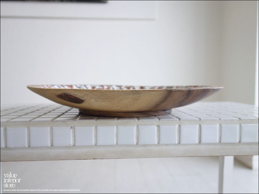 モンキーポッド総無垢材 デコレーショントレイWG 菓子鉢 小物入れ 飾り皿 木製 手作り エスニック ハンドメイド 一点物 直径30cm