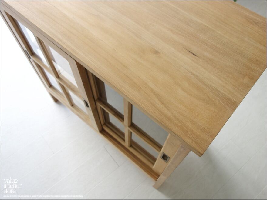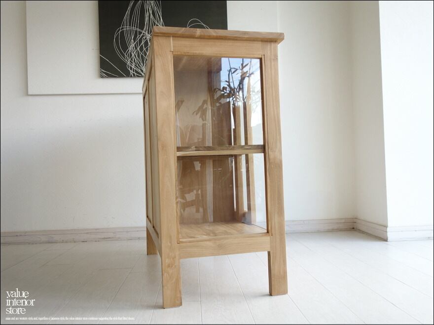 チーク総無垢材で贅沢に仕上げた使い勝手の良いスライド扉ガラスキャビネット。