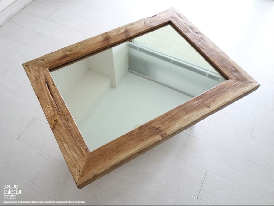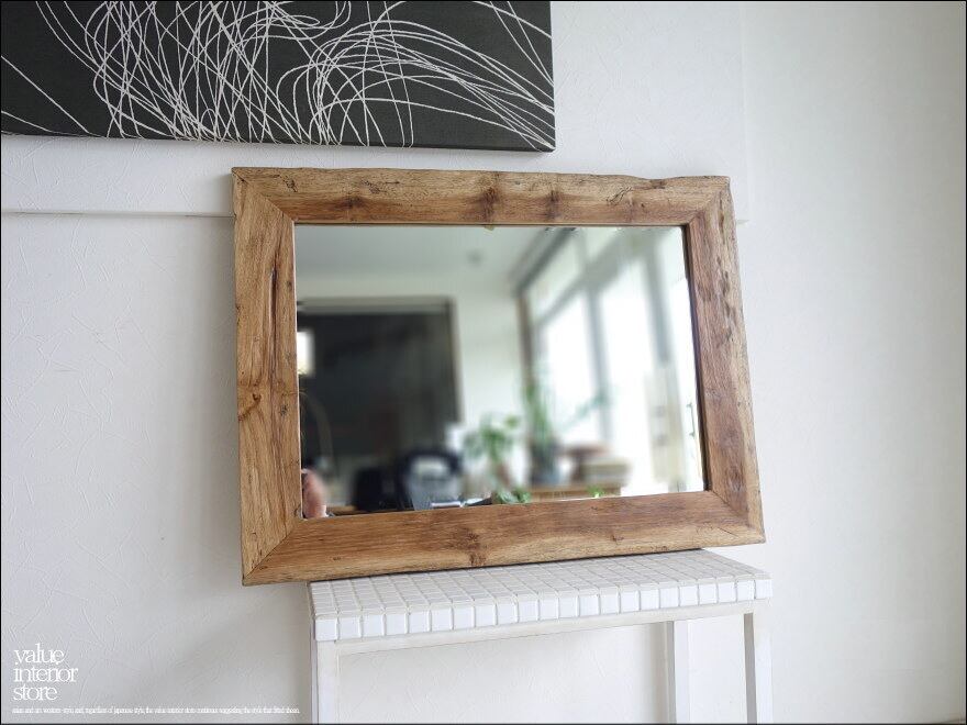 古材 鏡 オールドチークフレームミラー壁掛80A レトロ 天然木 ハンドメイド 手作り 総無垢 壁掛け 銘木 送料無料 幅60cm x 縦80cm