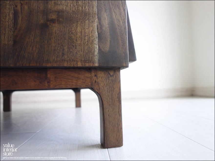 ◇日本製のような正確さは無いかもしれませんが、1点1点出来上がるまでの殆どの工程を手作業で行う、インドネシア家具職人たちの手造りの製法にはとても暖か味が感じられます。細かな傷ワレやフシ穴、色ムラや濃淡、また扉などの反りなど無垢材特有の”暴れ”が見受けられる場合がございますが、素材や手づくりのテイストとして工業品にはない自然の質感をお楽しみ下さい。