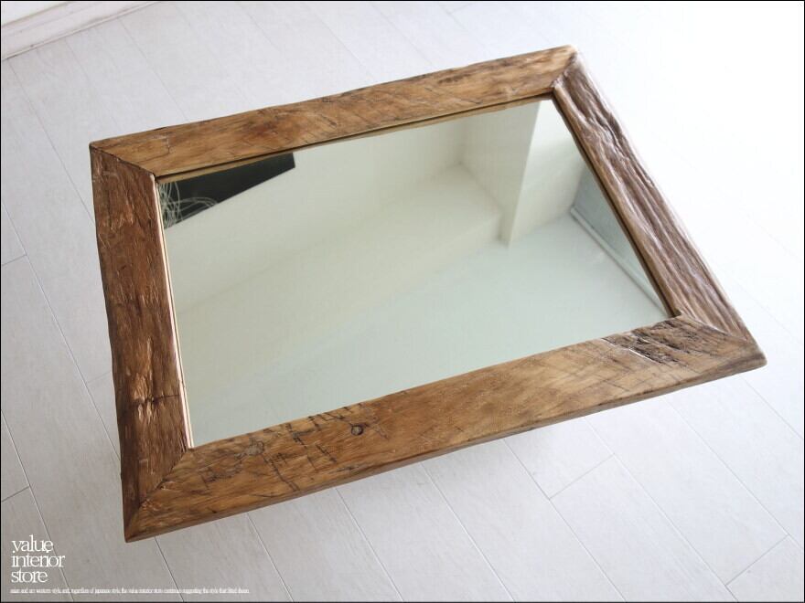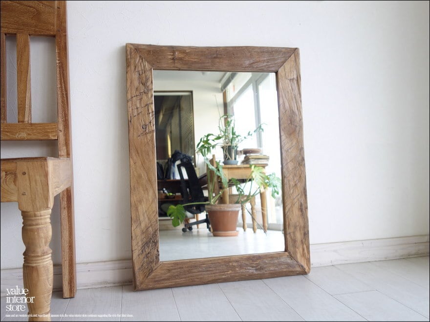 古材 鏡 オールドチークフレームミラー壁掛80D レトロ 天然木 ハンドメイド 手作り 総無垢 壁掛け 銘木 送料無料 幅60cm x 縦80cm