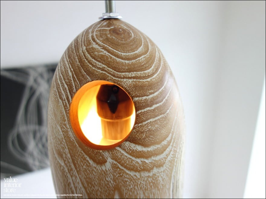 ※日本製のような正確さは無いかもしれませんが、1点1点出来上がるまでの殆どの工程を手作業で行うインドネシア職人たちの手造りの製法にはとても暖か味が感じられます。細かな傷ワレやフシ穴、濃淡、また反りなどの無垢材特有の”暴れ”、器具とシェードの中心の傾きなど見受けられる場合がございますが、素材や手づくりのテイストとして工業品にない自然の質感をお楽しみ下さい。