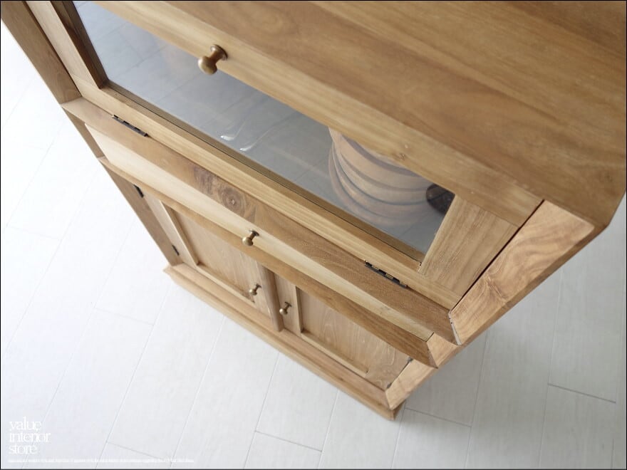 チーク総無垢材 ガラス扉付 収納キャビネットAF 食器棚 ガラスケース 飾り棚 キッチン収納 保管庫 ナチュラル 和 三大銘木 送料無料
