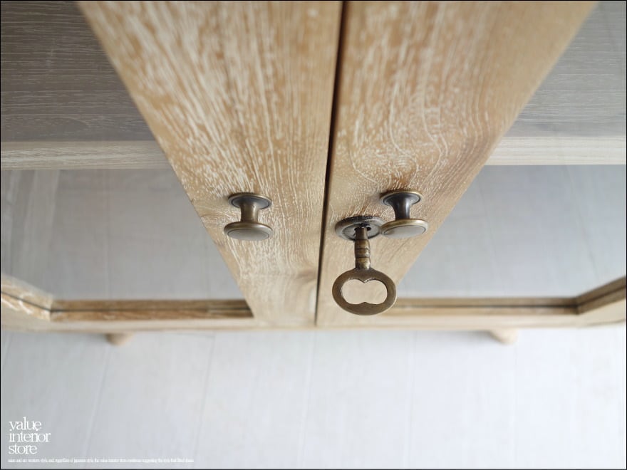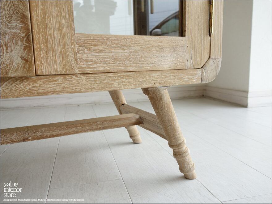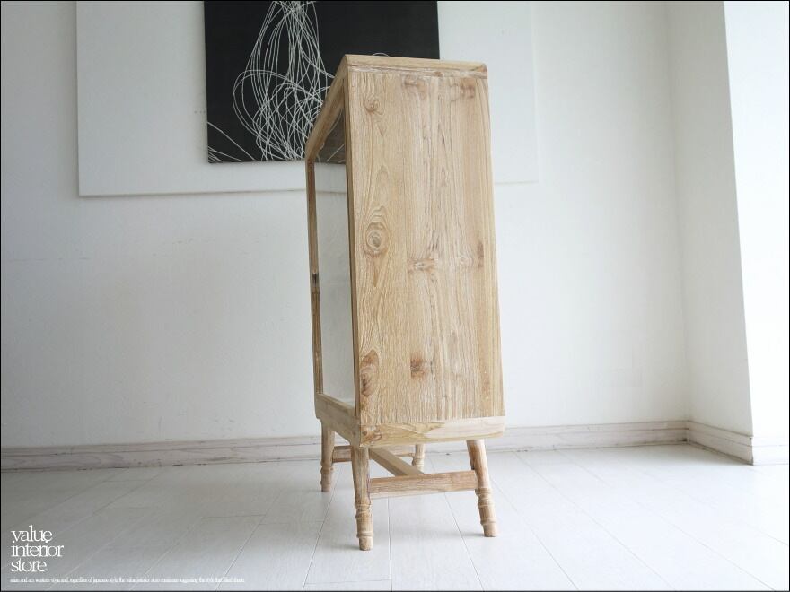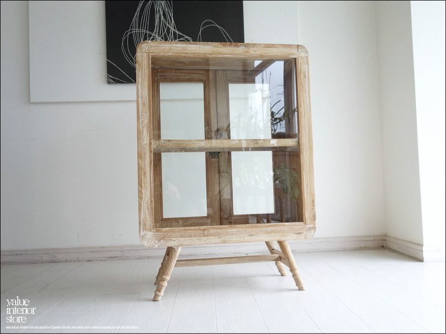 フレームはチーク総無垢でガラス面が多く中がキレイに見えますので、お店のショーケースとしてもお使いいただけます。表面は凹みに薄っすらと白色を入れるナチュラルホワイト仕上げ。硬く張りのあるチーク材だからできる仕上げ方法です。カフェなどのパン用ショーケース、食器棚、小物のディスプレイなど幅広くお使いください。