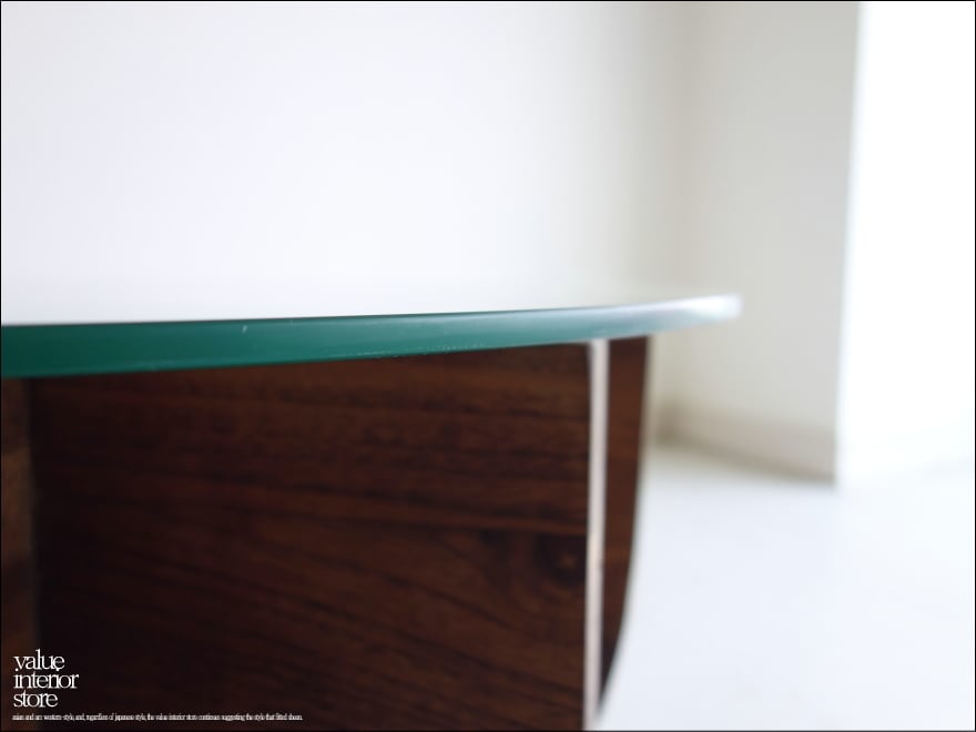 独特なフォルムが印象的で目を惹くデザインです。天板のガラスは8ミリ厚のものを使用しておりますのでどっしりと安定しています。チークの持つ渋く力強い特徴を存分に引き出しているフレームと天板のガラスとのバランスがとても良いです。お部屋のリビングなどお気に入りスペースでぜひお楽しみ下さい。