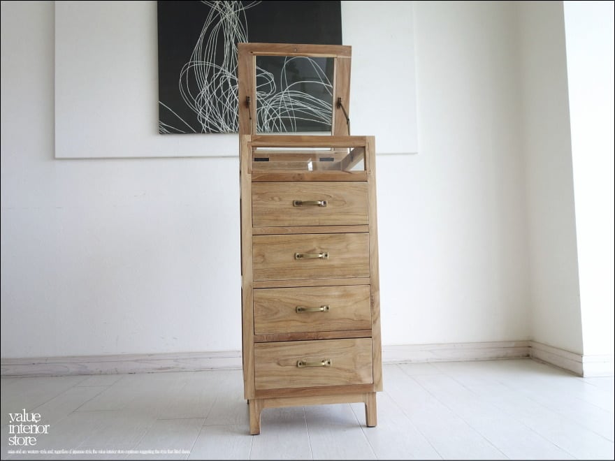 「 ノムラ様 サイズオーダー家具 」チーク無垢材 ショーケース付チェストN 整理タンス ナチュラル ガラスケース 収納 真鍮金物 銘木家具
