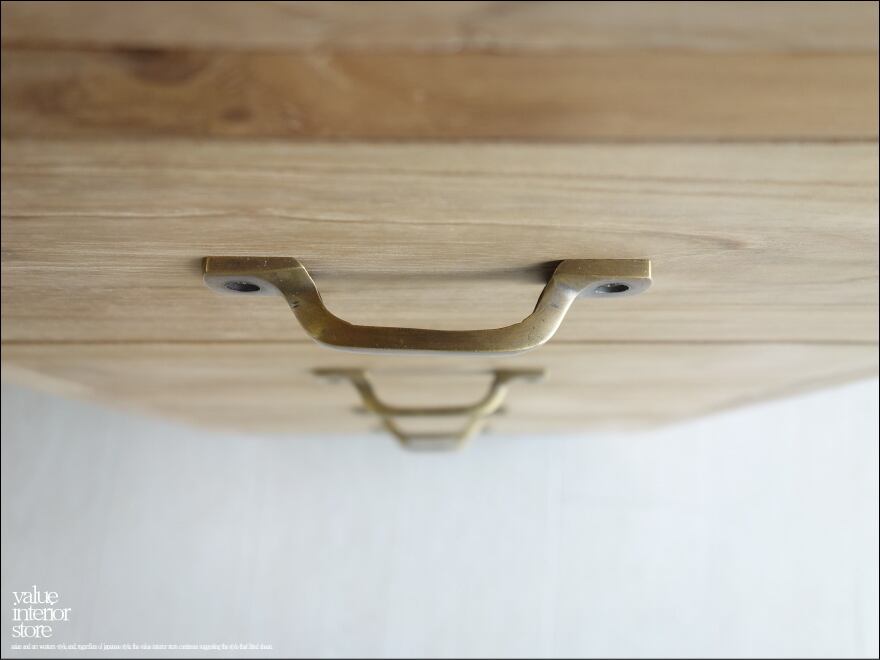 ・素材 : チーク無垢、ガラス、真鍮(取っ手)、(裏板・引き出しの底のみ合板)