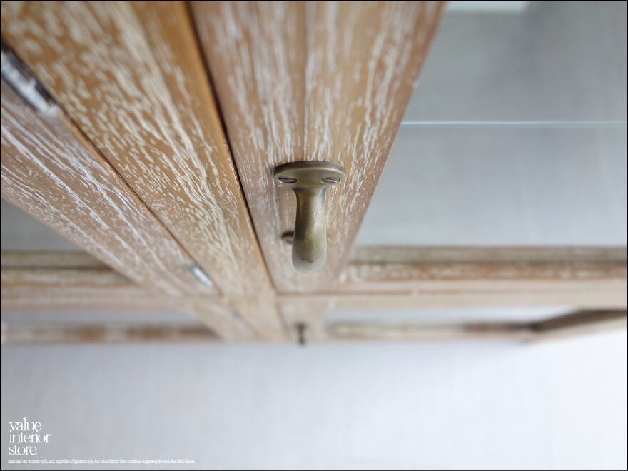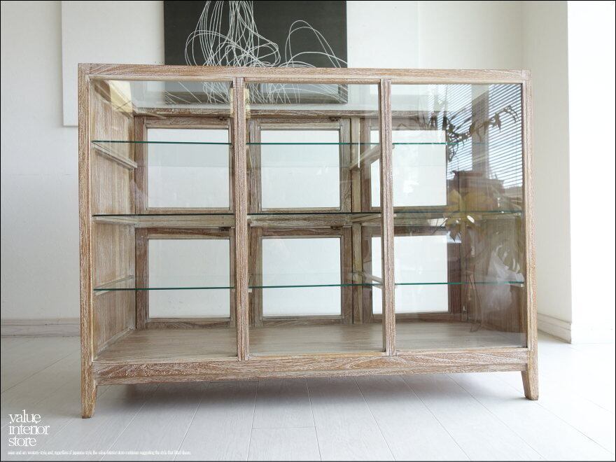 中がキレイに見えますので、お店のショーケースとしてもお使いいただけます。中は仕切りの無い空間ですので用途に合わせて自由に使えます。アンティークではありませんが古くからそこにあったような温か味のある仕上がりになっています。カフェなどのパン用ショーケース、食器棚、小物のディスプレイなど幅広くお使いください。