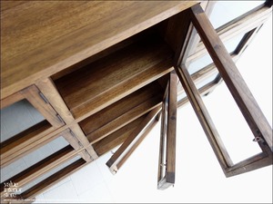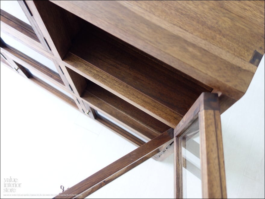 チークの持つ木目の美しさが際立った前面ガラスのロッカー。