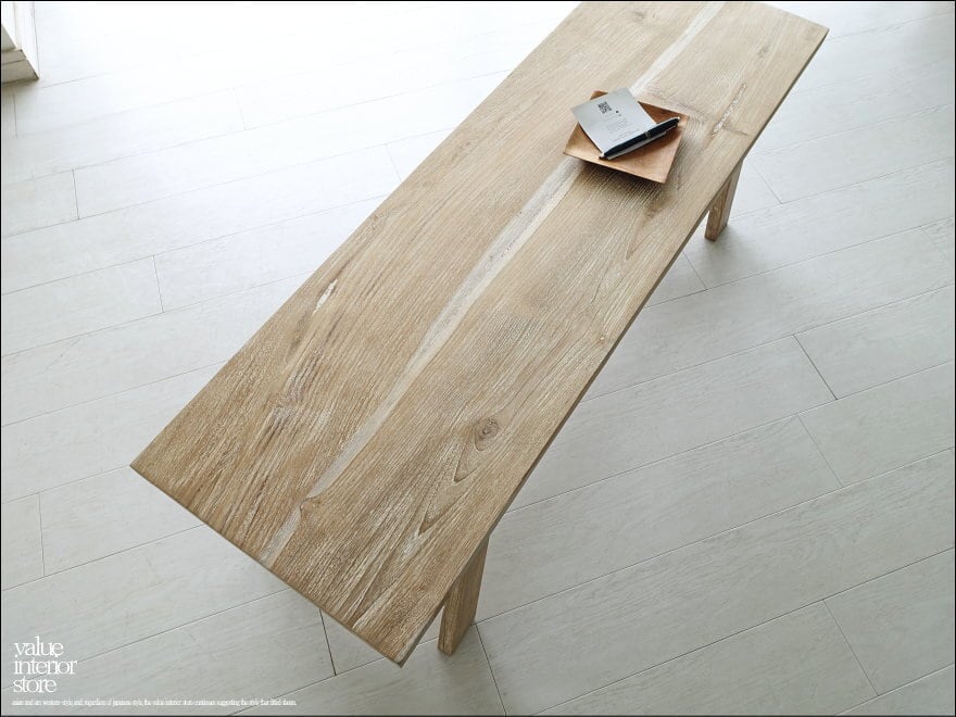 チーク無垢材 ベンチBanc/WW 長椅子 ダイニングベンチ 一枚板 シャビー ナチュラルホワイト 椅子 イス シンプル 世界三大銘木 送料無料 idabanc