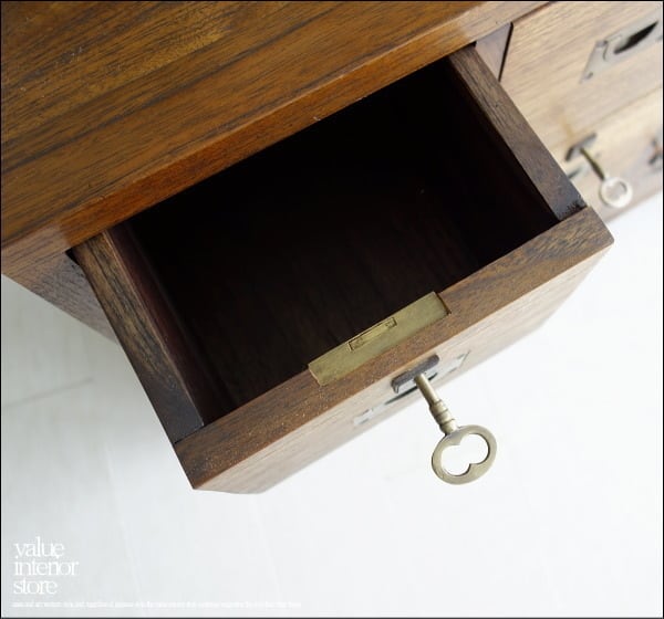 左側の6個の引き出しには全て鍵がついています。見た目にも可愛らしく貴重品も