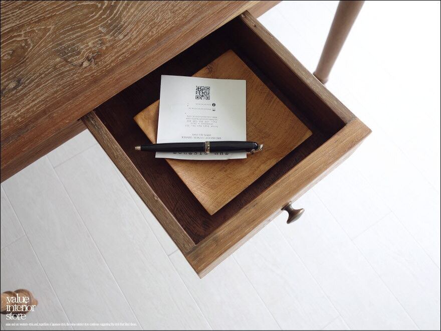 とても存在感がありゆったりとしています。職人さんが丹精こめて作った印象に溢れていて、このデスクに向かうと自然と気持ちまで落ち着くようです。西洋、アジアン、和風モダン、北欧など幅広いテイストのインテリアと相性良くコーディネートできますのでお気に入りスペースでお使いください。