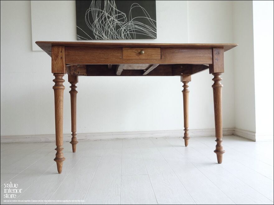 チーク無垢材 ヴィンテージテーブルD/1 デスク 机 アンティーク ダイニング 什器 無垢材家具 一点物 表面再仕上済 再生家具 三大銘木