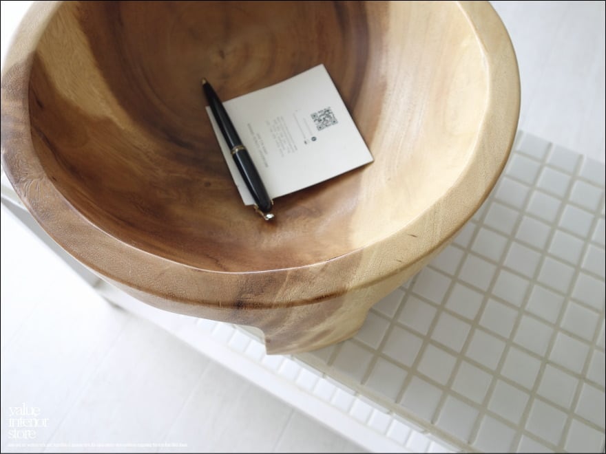 ◇1点1点出来上がるまでの殆どの工程を手作業で行う、インドネシア職人たちの手造りの製法にはとても暖か味が感じられます。細かな傷、ひび割れやフシ穴、色の濃淡、凹凸や反り、穴などの無垢材特有の”暴れ”が見受けられる場合がございますが、手づくりのテイストとして工業品にはない自然の質感をお楽しみ下さい。