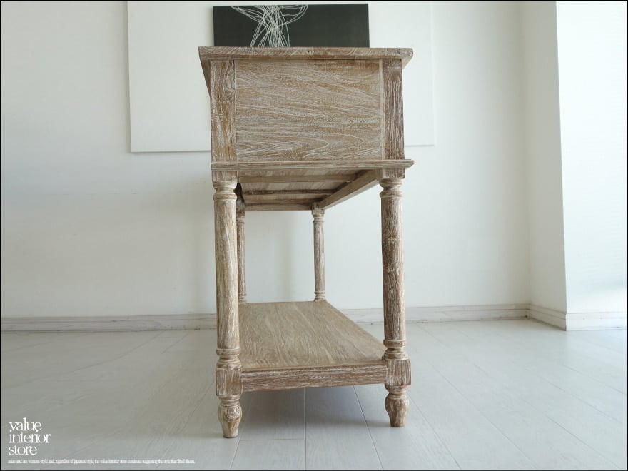 レジカウンターやコンソールテーブル、陳列台などの什器としてお使いいただけます。シャビーでアンティークな雰囲気さえ感じられるカウンターです。雑貨屋さんや美容室のレジ台にぜひどうぞ!