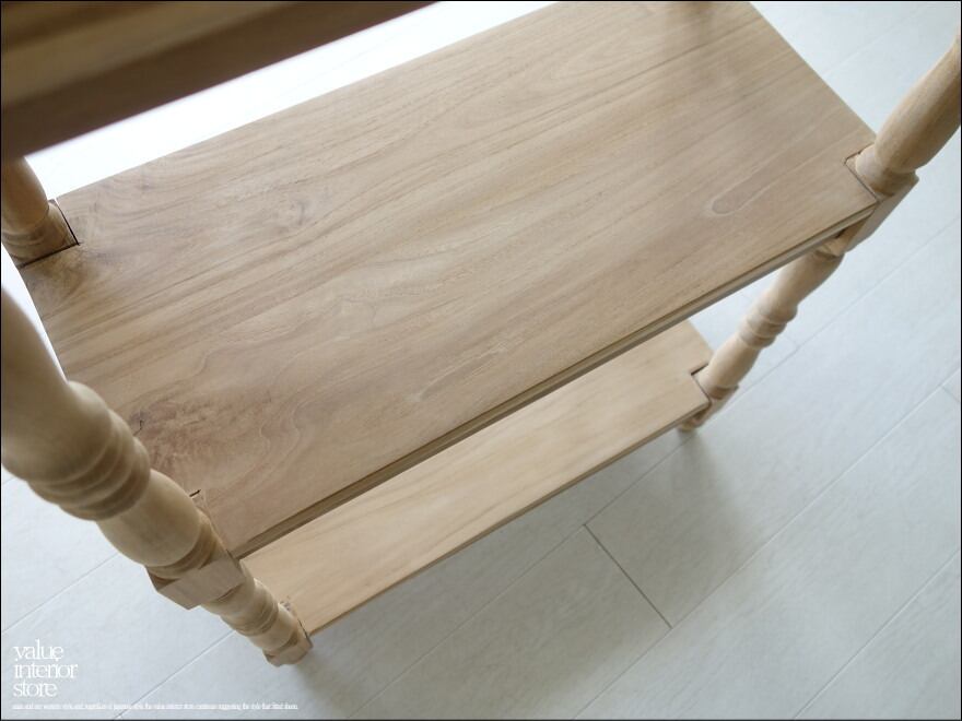 ナチュラルで素朴な質感は、経年変化でいわゆるチーク色へ徐々に変化していくところも楽しみの一つです。余分な装飾を無くしたシンプルな棚板と、丸く柔らかな印象の脚とのバランスがとってもかわいいですよ♪