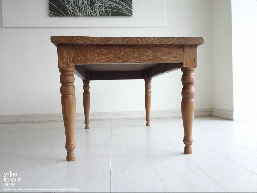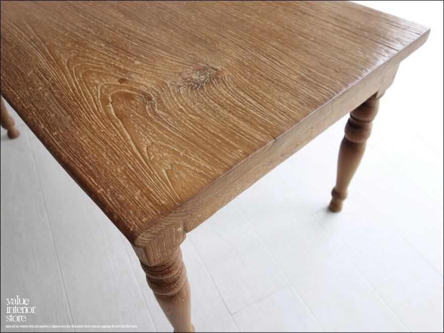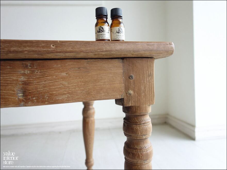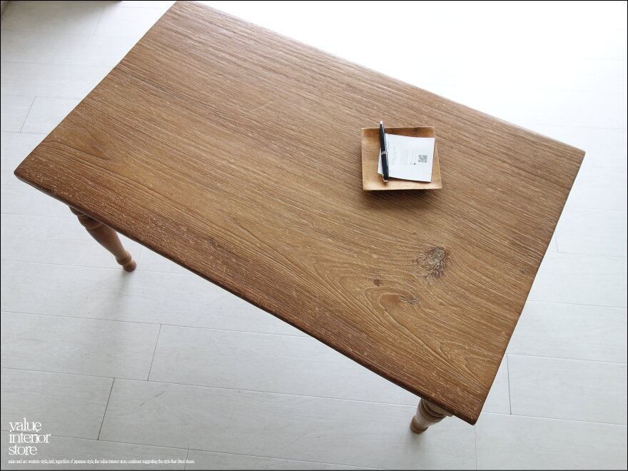 この商品は、欠損箇所の補修、表面を全体的にワイヤーブラシで軽く削るラスティック仕上げをした後に、ワックスで仕上げていいる再生家具となります。元々の雰囲気は残して仕上げています。傷、ワレやフシ穴、色の濃淡、傾き、歪み、反り、汚れなどがございますが、素材や古いものの持つテイストとしてご理解をいただきますようお願い致します。
