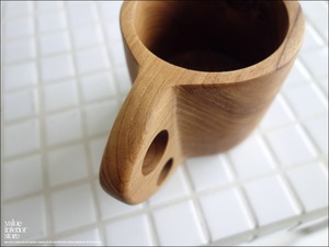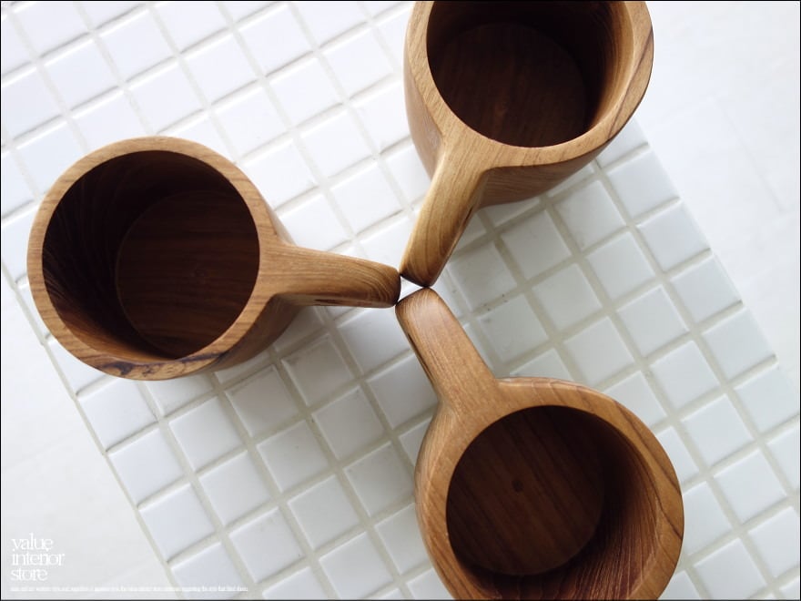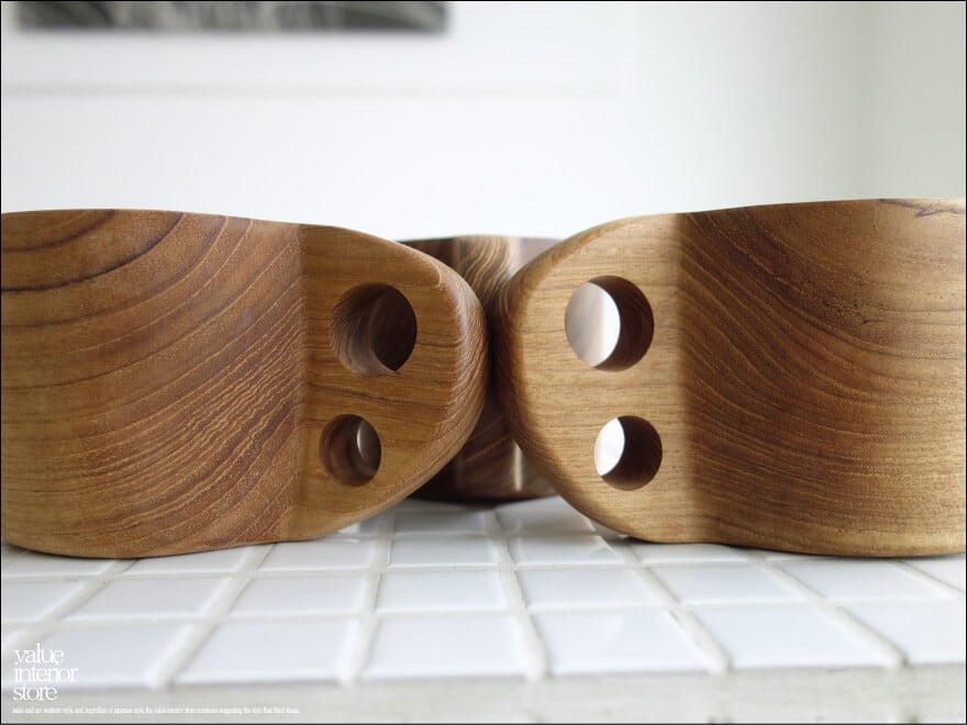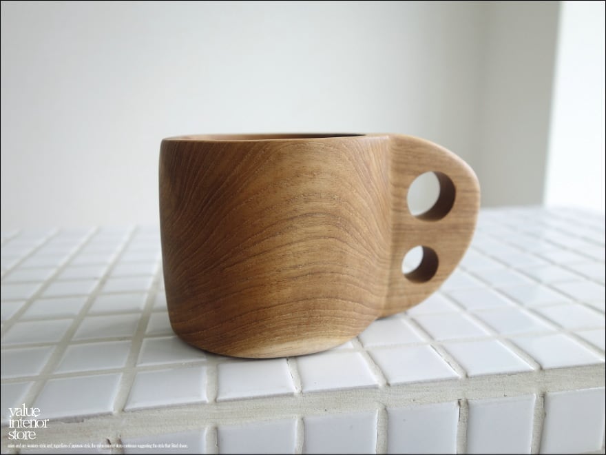 チークの独特で味のある形や木目を活かし魅力的に仕上がっています。木工旋盤とサイディング仕上げで一つ一つ手作業で製作します。表面はミネラルオイル(ライム油・大豆油・チョウジ油・ナツメグ油)仕上げ。柔らかな口当たりの良さが魅力的で、手になじみます。
