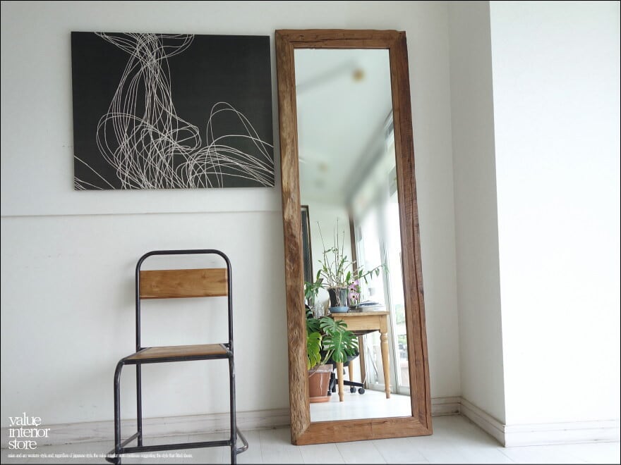 「 キタ様 サイズオーダーミラー 」 オールドチーク総無垢 ミラー180cm 姿見 鏡 全身鏡 古材 全身用 手作り ナチュラル レトロ 世界三大銘木 60cm x 180cm