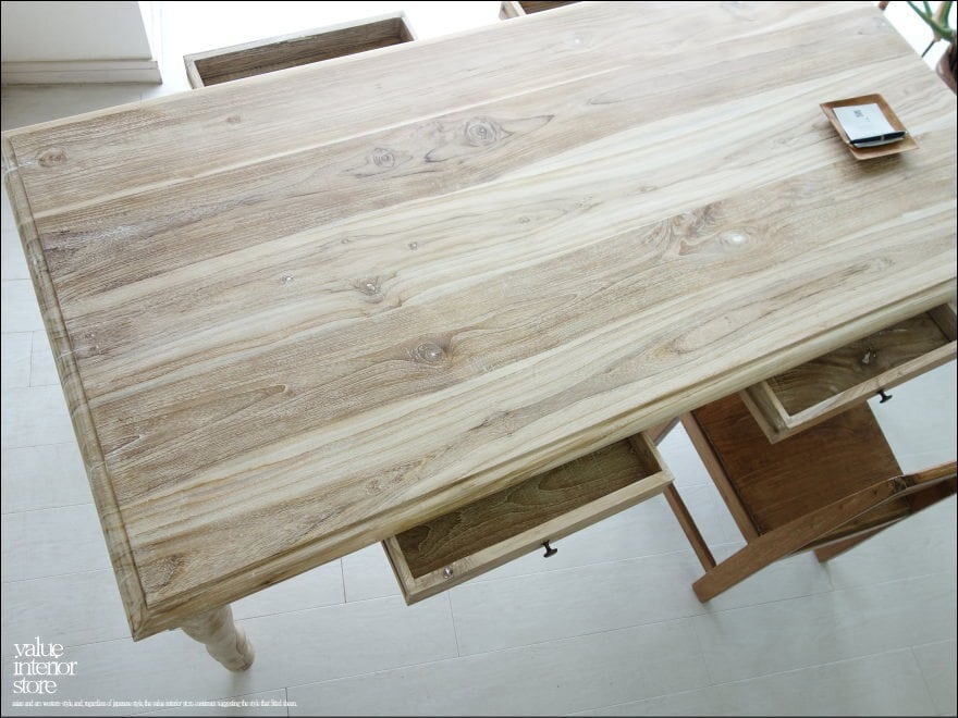 チーク総無垢 ダイニングテーブルPiana180 食卓テーブル デスク 手作り 机 ナチュラルホワイト 無垢材 送料無料 世界三大銘木 W180×D90cm