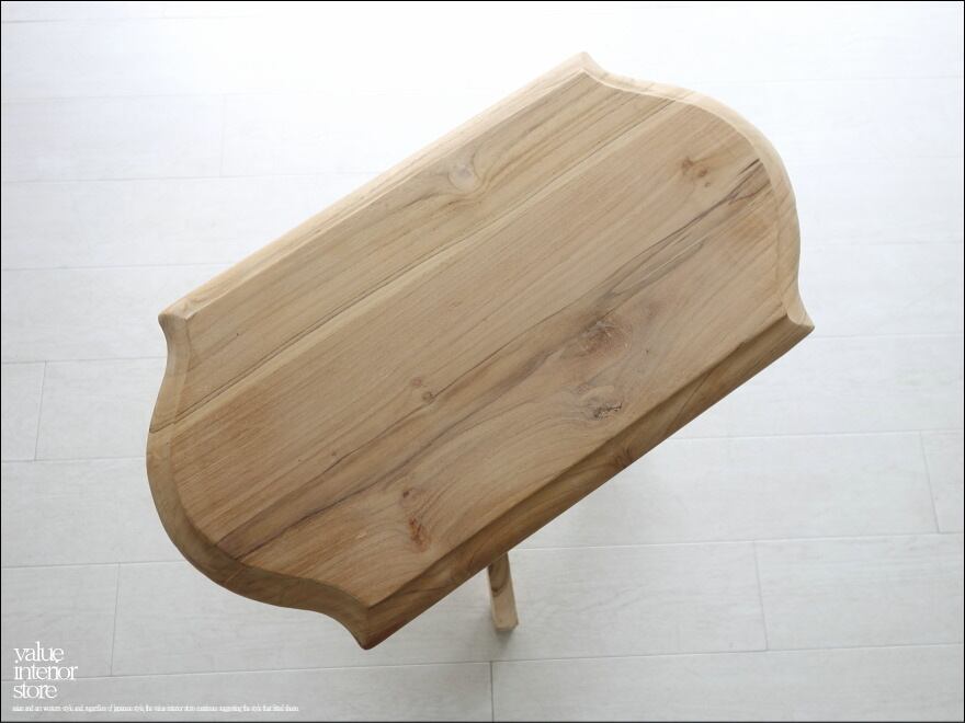 チークの硬く張りのある特徴が伝わってきて、脚と天板のバランスもとても上品です。シンプルなデザインで、チークの良さを存分に楽しんでいただける、とてもステキなカフェテーブル。
