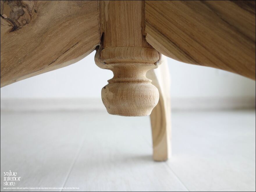 ◇日本製のような正確さは無いかもしれませんが、1点1点出来上がるまでの殆どの製作工程を手作業で行う、インドネシア家具職人たちの手づくり製法はとても暖か味が感じられます。細かな傷、ひび割れやフシ穴、お色の濃淡、また反りなどの無垢材特有の”暴れ”や修理痕が見受けられる場合がございますが、無垢材の素材や特徴、また手づくりのテイストとして工業品にはない自然の質感をお楽しみ下さい。