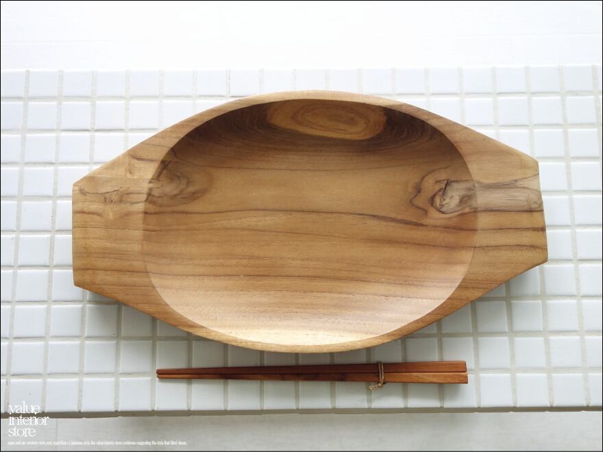 世界三大銘木として知られるチーク材のお皿。 チークの独特で味のある形や木目を活かし魅力的に仕上がっています。木工旋盤とサイディング仕上げで一つ一つ手作業で製作します。表面はミネラルオイル(ライム油・大豆油・チョウジ油・ナツメグ油)仕上げ。木製ならではの柔らかな口当たりの良さが魅力的です。(当店の全ての木製食器は、輸入申告の際に食品等輸入届出書を提出しております。)