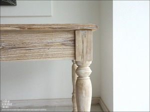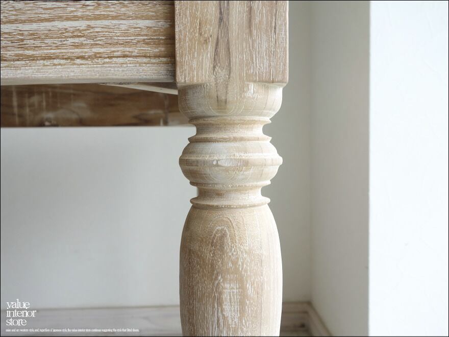 表面はワイヤーブラシで軽く削ってから白色を塗布した後に、紙やすりで再度表面を削る手法を用いていますので、シャビーな質感に仕上がっています。西洋、アジアン、和風モダン、北欧など幅広いテイストのインテリアと相性良くコーディネートできますのでお気に入りスペースでお使いください。