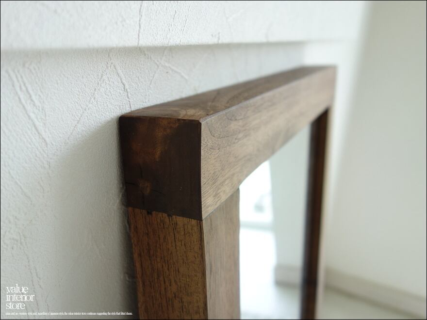 チークの木目が美しい引き立つティーブラウン仕上げのシンプルなチークミラー。