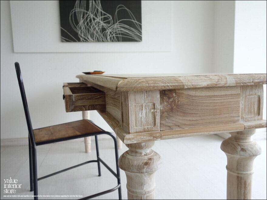 天板を支える脚、また、幕板もこだわったデザインで大人の雰囲気があります。チークの渋く硬い特徴やフシなどの木が本来持つ個性的なキャラクターが大変面白く、また、手作りでしか出せない素朴な質感とのバランスも良いです。良質な油分を豊富に含むチーク材ですので、徐々にチーク色に変化していくところも楽しんでいただけます。こんなテーブルとチェアで毎日食事ができたらステキですね。ショップやカフェのテーブルとしてもおすすめです。