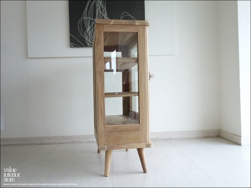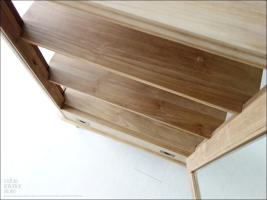 チーク無垢材で贅沢に仕上げた使い勝手の良いガラスキャビネット。