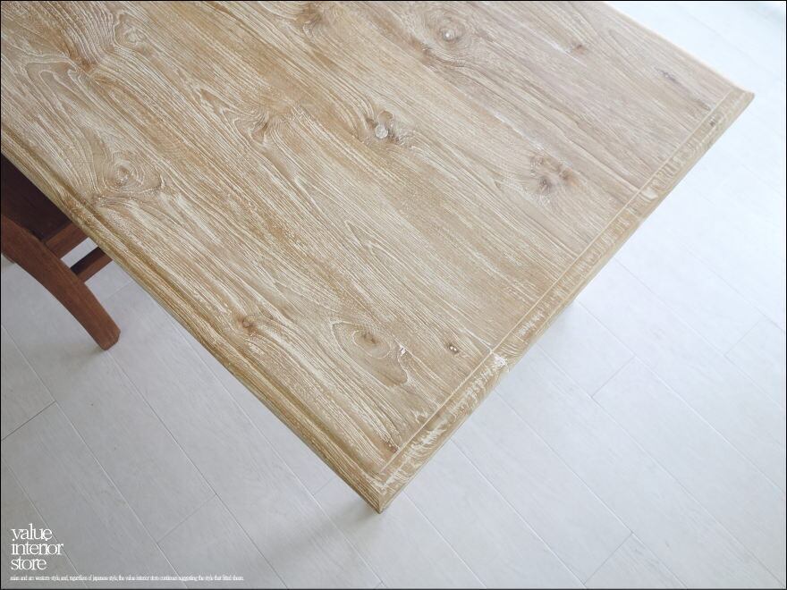 一目見ただけでフシなどの変化にとても富んだ木目の味わい深さが感じられるチークダイニングテーブル。