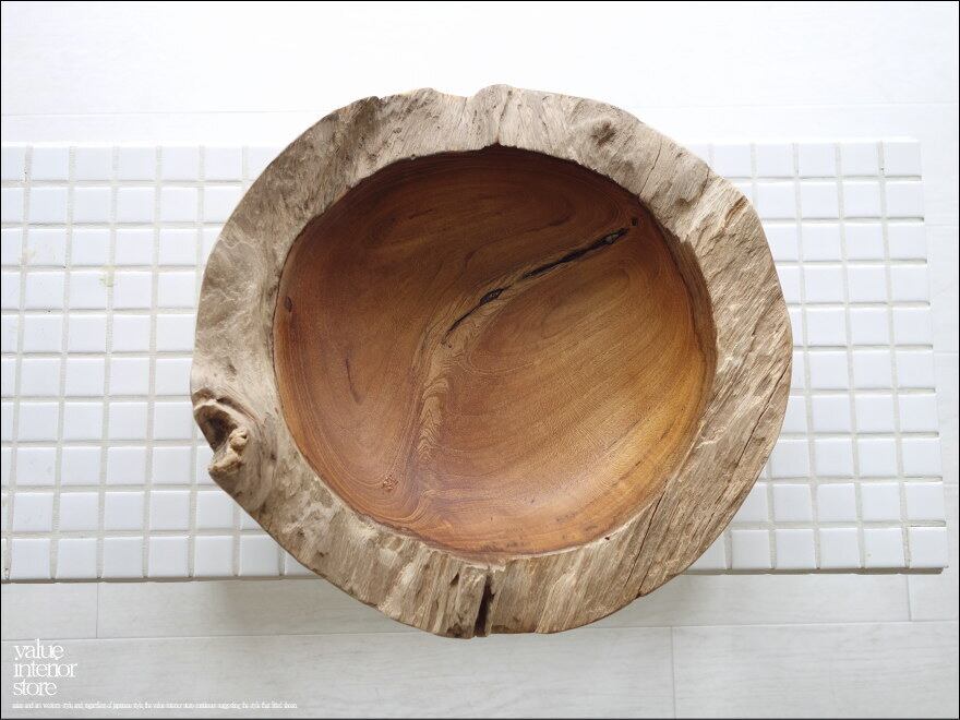 チーク総無垢プリミティブトレイ 飾り鉢N30cm ボウル 小物入れ ナチュラル 天然木 ボウル 鉢 入れ物 天然オイル仕上げ 世界三大銘木