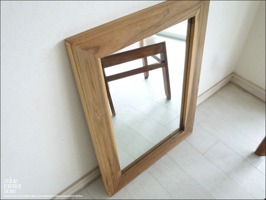古材 鏡 オールドチークフレームミラー壁掛80H レトロ 天然木 ハンドメイド 手作り 総無垢 壁掛け 銘木 送料無料 幅60cm x 縦80cm